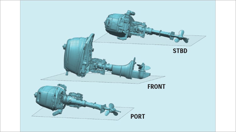 The overhead integral fuel tank and the new lubricating systems allow transport and storage of the outboard on any of three sides (port, starboard, or front) without leakage of fuel or oil.